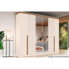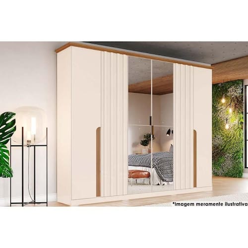Guarda Roupa Casal 6 Portas (2 c/ Espelho) e 6 Gavetas Napoli Off White/Nature - Henn Marca: Henn