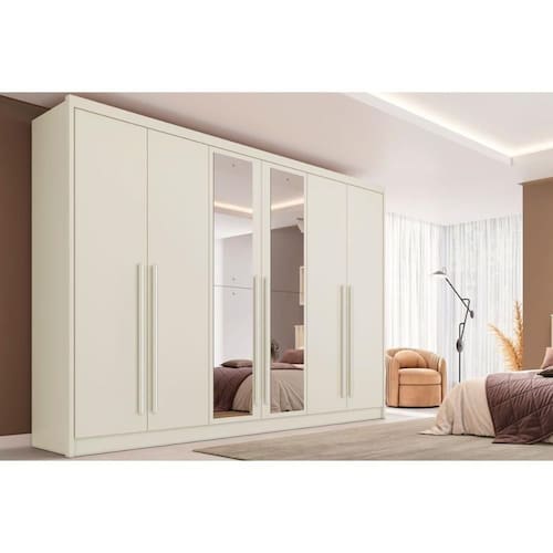 Guarda Roupa 6 Portas (2 C/ Espelho) E 6 Gavetas Valencia Off White - Europa