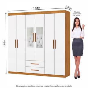 Guarda-roupa 6 Portas 2 Gavetas com Espelho Aurora Cinamomo/Branco