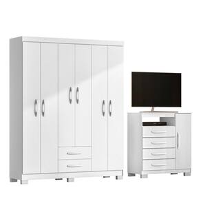 Kit Guarda-Roupa Casal 6 Portas 2 Gavetas com Cômoda Sapateira 4 Gavetas 1 Porta