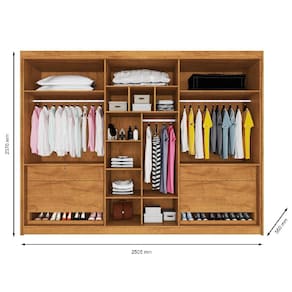 O Guarda Roupa 6 Portas 2 Portas Ripadas Potente com Espelho MDF - Móveis Europaune praticidade, espaço e elegância em um só item. Seu design moderno é acentuado pelas portas ripadas de madeira e pelo espelho integrado, complementado por um acabamento em Verniz UV que proporciona uma escala de brilho semi-brilho e uma durabilidade excepcional. Fabricado em 100% MDF (Madeira de Reflorestamento), o guarda roupa destaca-se pelas suas 6 portas elegantes com grandes puxadores em madeira e 6 gavetas internas, uma dessas gavetas possuem chave, oferecendo segurança adicional para seus itens mais preciosos e são equipadas com puxadores modernos. O roupeiro inclui ainda 2 sapateiras com corrediças telescópicas, prateleiras espaçosas e cabideiros em alumínio, garantindo um excelente aproveitamento dos espaços internos e alta durabilidade. Para maior resistência e durabilidade, o móvel conta com costas parafusadas.