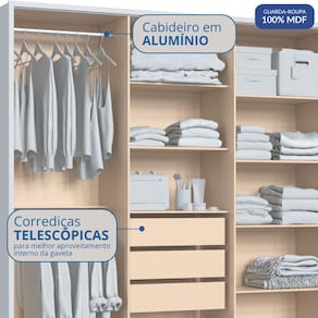 Guarda-Roupa 6 portas Safira é 100% MDF com espelho, com puxadores em MDF e corrediças telescópicas para fácil acesso. Seus cabideiros de alumínio garantem resistência, enquanto o interior conta com diversas prateleiras para organização prática. Perfeito para quem busca funcionalidade e elegância. Acabamento da Prateleira: Pintura UV Escala de Brilho da Prateleira: Semi-Fosco Acabamento da Gaveta: Pintura UV Possui Organizador de Gaveta: Não Acabamento da Porta: Pintura UV Escala de Brilho da Porta: Semi-Fosco Altura do Espelho: 90 cm Altura dos Pés: 5 cm Altura Máxima dos Pés: 5.0000 Ambiente Principal: Quarto codigo_ean: 7900288105424 Complexidade da Montagem: Média: pode ser montado por mais de uma pessoa e/ou necessite de maior conhecimento para montagem Cor: Branco Line/Cedro Cor do Produto: Branco Line/Cedro Cor Interna: Bege Escala de Brilho: Semi-Fosco Espessura da Estrutura (mm): 12 mm Espessura das Portas (mm): 15 mm Espessura das Prateleiras (mm): 12 mm Espessura do Espelho: 3 mm Espessura do Fundo (mm): 3 mm Espessura do Fundo das Gavetas (mm): 3 mm Formato do Espelho: Retangular Itens Inclusos: 1 Guarda Roupa, +1 Manual de Montagem Largura do Espelho: 25 cm Linha ou Coleção: Quarto Manual de Montagem e Instalação: https://product-hub-prd.madeiramadeira.com.br/980665/documents/b367466e-6ba8-437e-84bf-8ed95f9856172735019531417416143646715.pdf Marca: Móveis Castro Material da Gaveta: MDF Material da Porta: MDF Material da Prateleira: MDF Material dos Pés: Plástico Material Principal: MDF modular: Não Necessita Montagem: Sim Origem do Produto: Nacional Peso: 147,45 kg Peso Máximo por Gaveta: 4 kg Peso Máximo por Prateleira: 8 kg Possui Calceiros: Não Possui Espelho: Sim Possui Pés: 08 Possui Portas: Sim Possui Prateleiras: Sim Produto Montado: Sim Quantidade de Cabideiros: 02 Cabideiros Quantidade de Espelho: 04 Espelhos com Tamanhos Iguais Quantidade de Portas com Espelhos: 2 Portas com Espelho Recomendações de Uso, Manutenção e Limpeza: Limpar com pano levemente umedecido Sistema de Montagem: Parafuso, minifix e cavilha. Tipo de Corrediça da Gaveta: Metálica Telescópica Tipo de Dobradiça/Corrediça da Porta: Aço Tipo de Fixação do Espelho: Fita Dupla Face Tipo de Gaveta: Interna Tipo de Guarda-Roupa: Casal Tipo de Puxador da Gaveta: Não Possui Tipo de Puxador da Porta: Externo
