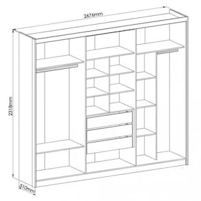 Características: Corrediças telescópicas de extração total Cabideiro alumínio Espaço para roupas longas Diversas prateleiras Portas com puxador em MDF 6 Portas 3 Gavetas