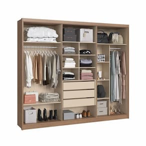 Características: Corrediças telescópicas de extração total Cabideiro alumínio Espaço para roupas longas Diversas prateleiras Portas com puxador em MDF 6 Portas 3 Gavetas