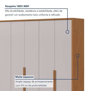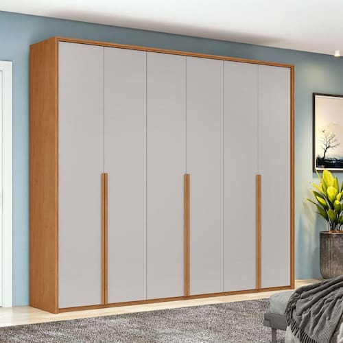 Sim, possui prateleiras, cabideiros e gavetas espaçosas para facilitar a organização. Acabamento da Prateleira: Pintura Escala de Brilho da Prateleira: Fosco Possui Cabideiros: 03 Acabamento da Gaveta: Pintura Escala de Brilho da Gaveta: Fosco Possui Organizador de Gaveta: Não Acabamento da Porta: Pintura Escala de Brilho da Porta: Fosco Material do Puxador da Porta: MDF Ambiente Principal: Quarto codigo_ean: 7900288076748 Complexidade da Montagem: Alta: deve ser montado por um montador especializado Cor: Amêndoa Clean/Off White Cor do Produto: Amêndoa Clean/Off White Escala de Brilho: Fosco Espessura da Estrutura (mm): 15 mm Espessura das Portas (mm): 15 mm Espessura das Prateleiras (mm): 15 mm Espessura do Fundo (mm): 2,7 mm Espessura do Fundo das Gavetas (mm): 2,7 mm Itens Inclusos: 1 Guarda Roupa 1 Manual de Montagem. Linha ou Coleção: Style Manual de Montagem e Instalação: https://product-hub-prd.madeiramadeira.com.br/978899/documents/f771c351-8276-478f-9174-c11676a75c40271270373217405072403767.pdf Marca: Móveis Lopas Material da Gaveta: MDF Material da Porta: MDF Material da Prateleira: MDF Material Principal: MDF modular: Não Necessita Montagem: Sim Origem do Produto: Nacional Peso: 212,5 kg Peso Máximo por Gaveta: 5 kg Peso Máximo por Prateleira: 6 kg Possui Calceiros: Não Possui Espelho: Não Possui Pés: Não Possui Portas: Sim Possui Prateleiras: Sim Produto Montado: Sim Quantidade de Cabideiros: 03 Cabideiros Quantidade de Gavetas: 04 Gavetas Quantidade de Prateleiras: 09 Prateleiras Recomendações de Uso, Manutenção e Limpeza: Utilizar pano macio levemente umedecido e na sequencia pano macio seco. Sistema de Montagem: Parafusos. Tipo de Corrediça da Gaveta: Metálica Telescópica Tipo de Dobradiça/Corrediça da Porta: Metálica Tipo de Gaveta: Interna Tipo de Guarda-Roupa: Casal Tipo de Puxador da Gaveta: Externo Tipo de Puxador da Porta: Externo