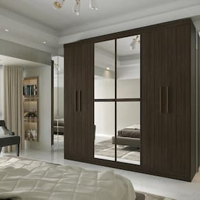 Guarda-roupa 6 Portas 4 Gavetas com Espelho Supreme Capuccino Wood - Marrom