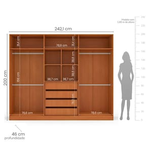 O guarda-roupa 6 portas 4 gavetas da linha Valência, da Politorno Móveis, é a opção ideal para quem busca espaço, funcionalidade e elegância. Com 200,4 cm de altura, 242 cm de largura e 46 cm de profundidade, oferece amplo espaço interno para organizar roupas, calçados e acessórios de forma prática e eficiente. Fabricado em MDP/MDF, com acabamento em pintura UV e FF, garante alta resistência e durabilidade. Seu design sofisticado é complementado pelos detalhes usinados e pelos puxadores externos, que oferecem praticidade no manuseio. As gavetas contam com corrediças telescópicas, proporcionando um deslizamento suave e preciso. Perfeito para quem deseja um móvel de alta qualidade e elegância no quarto.