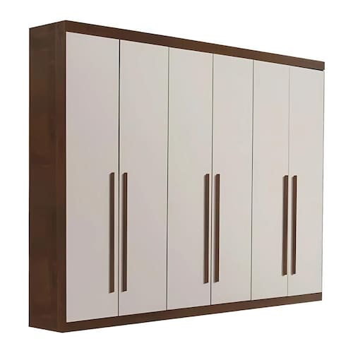 Cabideiros em Alumínio: 4;Puxadores: 6;Material dos Puxadores: Plástico;Material: MDP;Possui Portas: 6;Tipo de Porta: Bater;Prateleiras: 7;Tipo de Corrediça: Telescópica;Complexidade de Montagem: Alta (deve ser montado por um montador especializado)Recomendações de Uso, Manutenção e Limpeza: Limpar com flanela limpa e seca. Não usar produtos abrasivos.