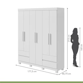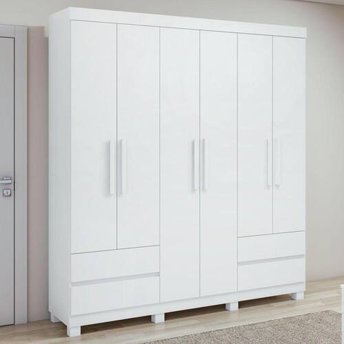 Precisando dar uma renovada no seu quarto? Que tal este Guarda-Roupa Zeus? Um móvel elegante, charmoso e amplo para você organizar e guardar os seus pertences. Confeccionado em materiais de ótima qualidade e resistência. O design moderno, proporcionando uma decoração sofisticada e agradável. Curtiu? Acabamento da Prateleira: Pintura Escala de Brilho da Prateleira: Fosco Possui Cabideiros: 02 Acabamento da Gaveta: Pintura Escala de Brilho da Gaveta: Fosco Possui Organizador de Gaveta: Não Acabamento da Porta: Pintura Escala de Brilho da Porta: Fosco Material do Puxador da Porta: MDF Acabamento dos Pés: Pintura Altura dos Pés: 7 Ambiente Principal: Quarto Complexidade da Montagem: Alta: deve ser montado por um montador especializado Cor: Branco Cor do Produto: Branco Escala de Brilho: Fosco Gaveta com Chave: Não Itens Inclusos: 1 Guarda roupa e manual de montagem. Linha ou Coleção: Zeus Manual de Montagem e Instalação: https://cdn2.madeiramadeira.com.br/atributo/mOveis-lopas/1684796-38986-420x400-manual-de-montagem-roupeiro-zeus-plus-6-pts.pdf Material da Gaveta: MDP Material da Porta: MDF Material da Prateleira: MDP Material dos Pés: PVC Material Principal: MDP modular: Não Necessita Montagem: Sim Origem do Produto: Nacional Peso: 100.28 Peso Máximo por Gaveta: 4 Peso Máximo por Prateleira: 6 Possui Calceiros: Não Possui Espelho: Não Possui Pés: 08 Possui Portas: Sim Possui Prateleiras: Sim Quantidade de Gavetas: 04 Gavetas Quantidade de Prateleiras: 06 Prateleiras Recomendações de Uso, Manutenção e Limpeza: Limpar somente com pano macio e seco, não colocar diretamente em incidência da luz solar, não colocar em lugar úmido. Sapatas Niveladoras: Não Sistema de Montagem: Parafusos e Cavilhas. Tipo de Corrediça da Gaveta: Metálica Telescópica Tipo de Dobradiça/Corrediça da Porta: Metálica Tipo de Gaveta: Externa Tipo de Guarda-Roupa: Casal Tipo de Puxador da Gaveta: Embutido Tipo de Puxador da Porta: Externo