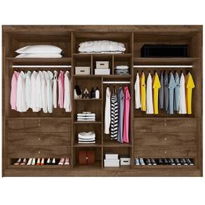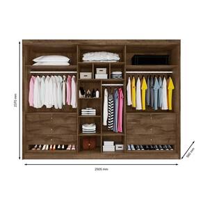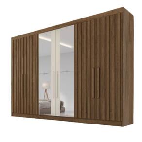O Guarda Roupa 6 Portas 4 Portas Ripadas Potente com Espelho MDF - Móveis Europaune praticidade, espaço e elegância em um só item. Seu design moderno é acentuado pelas portas ripadas de madeira e pelo espelho integrado, complementado por um acabamento em Verniz UV que proporciona uma escala de brilho semi-brilho e uma durabilidade excepcional. Fabricado em 100% MDF (Madeira de Reflorestamento), o Guarda Roupa destaca-se pelas suas 6 portas elegantes com grandes puxadores em madeira e 6 gavetas internas, uma dessas gavetas possuem chave, oferecendo segurança adicional para seus itens mais preciosos e são equipadas com puxadores modernos. O roupeiro inclui ainda 2 sapateiras com corrediças telescópicas, prateleiras espaçosas e cabideiros em alumínio, garantindo um excelente aproveitamento dos espaços internos e alta durabilidade. Para maior resistência e durabilidade, o móvel conta com costas parafusadas.