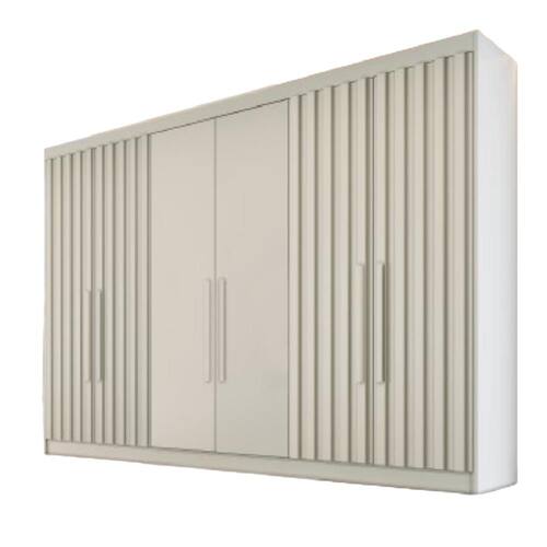 O Guarda Roupa 6 Portas 4 Portas Ripadas Potente com Ripado MDF - Móveis Europaespaço e elegância em um só item. Seu design moderno é acentuado pelas portas ripadas de madeira, complementado por um acabamento em Verniz UV que proporciona uma escala de brilho semi-brilho e uma durabilidade excepcional. Fabricado em 100% MDF (Madeira de Reflorestamento), o Guarda Roupas destaca-se pelas suas 6 portas elegantes com grandes puxadores em madeira e 6 gavetas internas, uma dessas gavetas possuem chave, oferecendo segurança adicional para seus itens mais preciosos e são equipadas com puxadores modernos. O Guarda Roupas inclui ainda 2 sapateiras com corrediças telescópicas, prateleiras espaçosas e cabideiros em alumínio, garantindo um excelente aproveitamento dos espaços internos e alta durabilidade. Para maior resistência e durabilidade, o móvel conta com costas parafusadas.