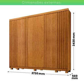 O Guarda-roupa Arezzo é produzido em chapa de 15 mm, garantindo robustez e maior vida útil. Com um design moderno, conta com portas laterais independentes, 6 portas, 12 prateleiras, 6 gavetas com corrediças telescópicas e puxadores internos em PVC. Além disso, possui cabideiro em alumínio, espaço para roupas longas, pés inclusos no produto e portas ripadas amadeiradas na cor do produto. Com ótimo custo-benefício, o Guarda-roupa Arezzo oferece praticidade e elegância para a organização do seu ambiente. Acabamento da Prateleira: BP Melamínico Escala de Brilho da Prateleira: Fosco Possui Cabideiros: 03 Acabamento da Gaveta: BP Melamínico Possui Organizador de Gaveta: Não Acabamento da Porta: BP Melamínico Escala de Brilho da Porta: Fosco Material do Puxador da Porta: PVC Altura dos Pés: 7 Altura Máxima dos Pés: 7.0000 Ambiente Principal: Quarto codigo_ean: 7909903487310 Complexidade da Montagem: Alta: deve ser montado por um montador especializado Cor: Cinamomo Cor do Produto: Cinamomo Cor Interna: Cinamomo Escala de Brilho: Fosco Gaveta com Chave: Não Itens Inclusos: 1 Guarda-Roupa, Kit Ferragens e Manual de Montagem Linha ou Coleção: Arezzo Manual de Montagem e Instalação: https://product-hub-prd.madeiramadeira.com.br/878987/documents/dacae798-0ae6-4f19-a3db-4a59d615aed29531benetilferragemtamreal.pdf Material da Gaveta: MDP Material da Porta: MDP Material da Prateleira: MDP Material dos Pés: PVC Material Principal: MDP modular: Não Necessita Montagem: Sim Origem do Produto: Nacional Peso: 205,5 kg Peso Máximo por Gaveta: 3 kg Peso Máximo por Prateleira: 3 kg Possui Calceiros: Não Possui Espelho: Não Possui Pés: 10 Possui Portas: Sim Possui Prateleiras: Sim Produto Montado: Sim Quantidade de Prateleiras: 12 Prateleiras Recomendações de Uso, Manutenção e Limpeza: Limpeza com pano macio e levemente umedecido. Não utilizar solventes a base e de inflamáveis. Não utilizar produtos abrasivos. Sistema de Montagem: Parafusos e cavilhas Tipo de Corrediça da Gaveta: Metálica Telescópica Tipo de Dobradiça/Corrediça da Porta: Metálica Tipo de Gaveta: Interna Tipo de Guarda-Roupa: Casal Tipo de Puxador da Gaveta: Externo Tipo de Puxador da Porta: Embutido