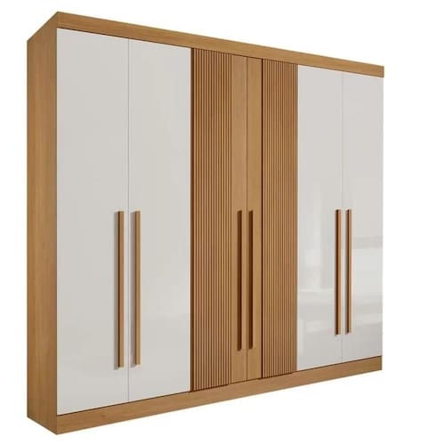 Guarda Roupa 6 Portas 6 Gavetas Da Vinci Plus Ripado Cinamomo Off White