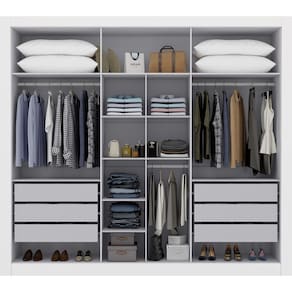 Caracteristicas do produto: Modelo: Cannes Matéria-prima: MDP Revestimento: Cor Branca: Revestimento UV; Outras cores: Revestimento Texturizado Acabamento: Cor Branca: Brilho; Outras Cores: Fosco Portas: 06 portas de abrir Dobradiças: Metálicas Gavetas: 06 gavetas Corrediças: Telescópicas Puxadores: 06 puxadores em MDF Prateleiras: 06 prateleiras Cabideiros: 03 cabideiros Pés: Rodapé Dimensões internas das gavetas: -LxAxP- 64 cm x 10 cm x 35 cm
