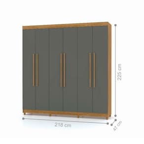 Produzido em MDP, 6 Portas, 2 Gavetas internas com corrediças metálicas., Cabideiro e calceiro em alumínio, Pés de madeira opcional na montagem, Puxadores em MDF com design moderno