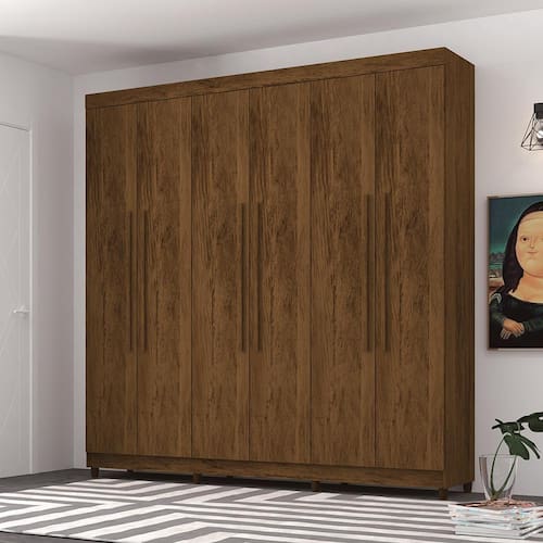 Produzido em MDP, 6 Portas, 2 Gavetas internas com corrediças metálicas., Cabideiro e calceiro em alumínio, Pés de madeira opcional na montagem, Puxadores em MDF com design moderno
