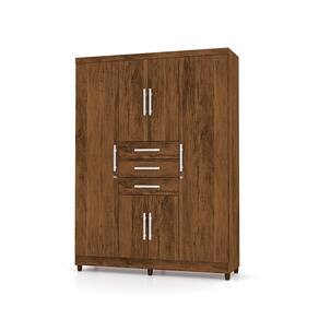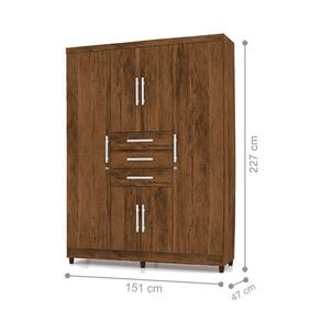 Produzido em MDP, 6 Portas, 3 Gavetas internas com corrediças metálicas., Cabideiro e calceiro em alumínio, Pés de madeira opcional na montagem.