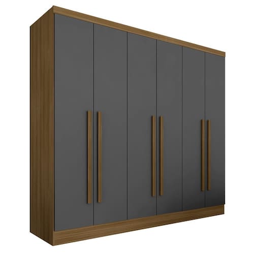 O Guarda Roupa Casal 6 Portas Mayra com um design contemporâneo e inteligente, combinando praticidade com um visual elegante, proporcionando um espaço organizado e estiloso para armazenar roupas, calçados e acessórios.Detalhes Técnicos- Montado: A: 207cm | L: 180cm | P: 47cm- 7 Divisões internas- 6 Portas de bater- 6 Puxadores- 4 Prateleiras- 2 Gavetas- 2 Cabideiros- Gavetas e Prateleiras suportam até 5kgMateriais- MDP- Dobradiças e Corrediças metálicas- Puxadores em madeira- Cabideiros em alumínio- Revestimento: FF Fosco- Tonalidade: Boreal/GrafiteConteúdo da Embalagem- 01 Guarda Roupa- Manual de Montagem- Acessórios para MontagemObservações Importantes- As imagens ambientadas são meramente ilustrativas e podem apresentar itens que não incorporam o produto;- Todos os nossos produtos são novos, acompanham documento fiscal e possuem garantia de 3 meses, essa garantia cobre somente defeitos de fabricação;- A entrega só será efetuada no endereço do CEP, caso o endereço seja diferente do CEP informado no pedido, a entrega terá cobrança adicional e o comprador arcará com as despesas;- Não realizamos entregas para zonas rurais, via caminhos fluviais e distritos, por isso não aceitamos CEP GERAL da região;- Não é possível realizar o agendamento de entrega do produto, é necessário que acompanhe o rastreio de seu pedido para saber a previsão de entrega;- As entregas somente serão realizadas para um responsável maior de idade (+18);- Enviamos para diversos estados, sendo assim nossas entregas são realizadas por transportadoras parceiras de nossa empresa. Confira as dimensões antes da compra e certifique-se de que o produto passará por elevadores, portas e corredores já que nossa entrega não inclui a subida de lances de escada, transporte por elevador e o lançamento de produtos, em caso de condomínios residenciais a entrega é feita somente até a portaria. Todas as entregas são realizadas em dias e horários comerciais;- Ao receber os seus produtos observe se a embalagem se encontra em perfeitas condições. Se você adquiriu algum móvel, confira atentamente a quantidade de volumes e o aspecto físico das embalagens. Confira também se a cor do móvel está de acordo com o seu pedido;- O prazo de cancelamento por arrependimento é de até 7 dias corridos a contar da data de recebimento;- Os produtos e assistências são enviados DESMONTADOS, MONTAGENS E DESMONTAGENS recomendamos sempre a contratação de um montador profissional e é válido lembrar que o custo desses serviços é por conta do comprador;- Objetos decorativos que aparecem na foto não acompanham o produto;- Evitar a exposição direta à luz solar e à umidade;- Para limpeza, limpar com pano macio e seco, não utilizar qualquer outro tipo de produtos químicos;- As cores do produto podem variar de acordo com o monitor, a iluminação do ambiente ou sua percepção visual.