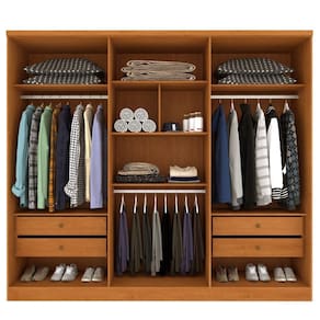 • PRODUTO EM MDP E MDF; • PUXADORES EM MDF; • DISTANCIADORES DAS GAVETAS EM MDF; • 4 DOBRADIÇAS DE 26mm POR PORTA; • CORREDIÇAS TELESCÓPICAS; • CABIDEIROS EM ALUMÍNIO; • GAVETAS INTERNAS COM PUXADORES; • KIT ESPELHOS (4 UNIDADES) E KIT PÉS (8 UNIDADES) OPCIONAIS (VENDIDOS SEPARADAMENTE).