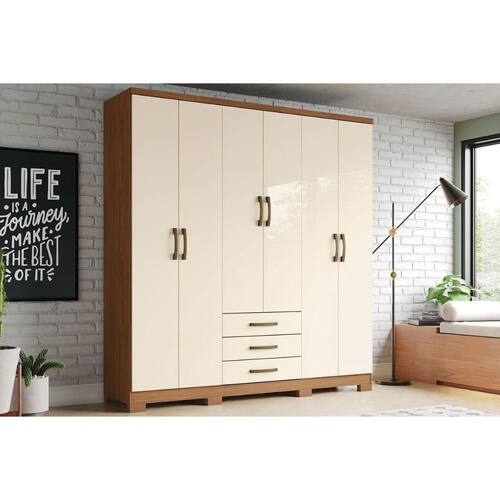 Guarda Roupa Solteiro 6 Portas e 3 Gavetas Caju DA136 Nature/Off White - Henn