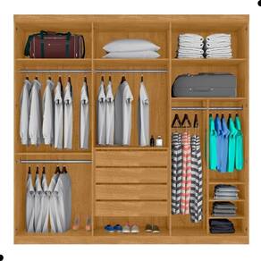 Feito em MDF 15mm.Possui 4 gavetas com corrediças telescópicas, 6 Portas , 7 prateleiras e 5 cabideiro.