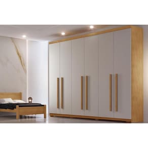 Guarda Roupa Casal 6 Portas e 4 Gavetas c/ Pés Bahia Naturale/Off White - Rufato
