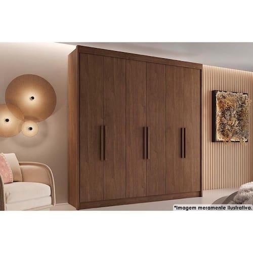 Tipo de Cabideiro - Aéreo Material dos Cabideiros - Cabideira Metálico Tipo de Porta do Guarda-Roupa - Portas de Bater Material das Portas - Portas em MDF Tipo de Dobradiças - Dobradiças Metálicas Quantidade de Portas - 6 Portas de Abrir Material das Gavetas - Gavetas em MDF Quantidade de Gavetas - 4 Gavetas Material das Prateleiras - Prateleiras em MDF Quantidade de Prateleiras - 5 Quantidade de Nichos - 2 Nichos