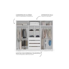 Material de Estrutura - MDF/MDP Tipo de Pintura - Ultravioleta Tipo de Acabamento da Pintura - Alto Brilho Tipo de Acabamento - Detalhe Usinado Diferenciais Guarda Roupas - Calceiro - Maleiro - Divisão Ele/Ela - Colmeia