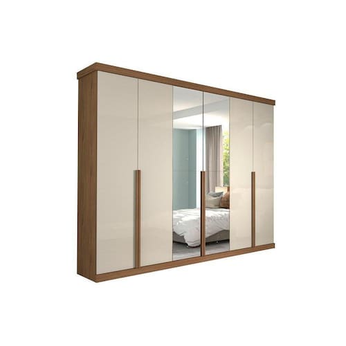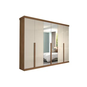 Guarda Roupa 6 Portas E 6 Gavetas C/ Espelho Guarapari Avelã/off White - Panan