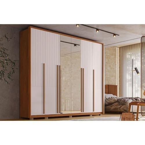 Tipo de Cabideiro - Aéreo Material dos Cabideiros - Cabideira Metálico Tipo de Porta do Guarda-Roupa - Portas de Bater Material das Portas - Portas em MDF Tipo de Dobradiças - Dobradiças Metálicas Diferenciais das Portas - Porta c/ Espelho Quantidade de Portas - 6 Portas de Abrir Quantidade de Portas com Espelho - 2 Portas com Espelho Tipo de Espelho - Espelho Externo Quantidade de Espelhos - 2 Espelhos Material das Gavetas - Gavetas em MDF Tipo de Corrediça - c/ Corrediças Telescópicas Quantidade de Gavetas - 6 Gavetas Tipo dos Pés - ABS/PVC Quantidade de Pés - 10 Pés Material das Prateleiras - Prateleiras em MDF Quantidade de Prateleiras - 14 Prateleiras Quantidade de Nichos - 2 Nichos