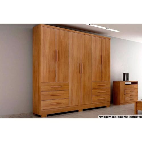 Material dos Cabideiros - Cabideira Metálico Tipo de Dobradiças - Dobradiças Metálicas Quantidade de Portas - 6 Portas de Abrir Tipo de Corrediça - c/ Corrediças Telescópicas Quantidade de Gavetas - 6 Gavetas Tipo dos Pés - ABS/PVC Quantidade de Prateleiras - 5