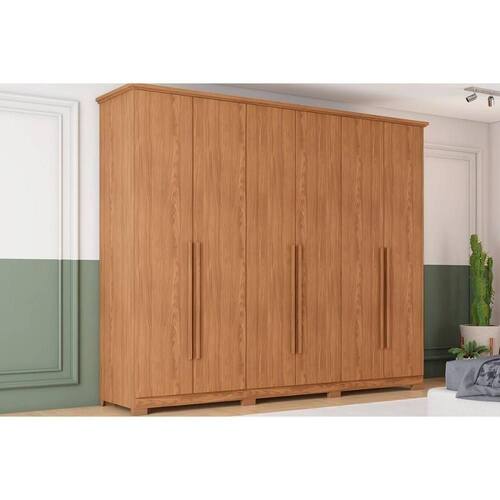 Material do Calceiro - Calceiro Metálico Tipo de Cabideiro - Aéreo Material dos Cabideiros - Cabideira Metálico Tipo de Porta do Guarda-Roupa - Portas de Bater Material das Portas - Portas em MDP Tipo de Dobradiças - Dobradiças Metálicas Quantidade de Portas - 6 Portas de Abrir Material das Gavetas - Gavetas em MDP Tipo de Corrediça - c/ Corrediças Telescópicas Quantidade de Gavetas - 6 Gavetas Diferenciais das Gavetas - c/ Detalhe Usinado Tipo dos Pés - Pés em ABS Quantidade de Pés - 8 pés Material das Prateleiras - Prateleiras em MDP Quantidade de Prateleiras - 5 Quantidade de Nichos - 2 Nichos