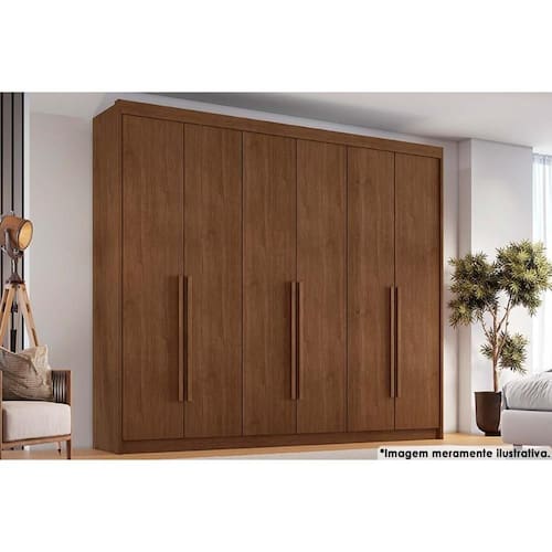 Tipo de Cabideiro - Aéreo Material dos Cabideiros - Cabideira Metálico Tipo de Porta do Guarda-Roupa - Portas de Bater Material das Portas - Portas em MDF Tipo de Dobradiças - Dobradiças Metálicas Quantidade de Portas - 6 Portas de Abrir Material das Gavetas - Gavetas em MDF Tipo de Corrediça - c/ Corrediças Telescópicas Quantidade de Gavetas - 6 Gavetas Material das Prateleiras - Prateleiras em MDF Quantidade de Prateleiras - 8 Quantidade de Nichos - 2 Nichos