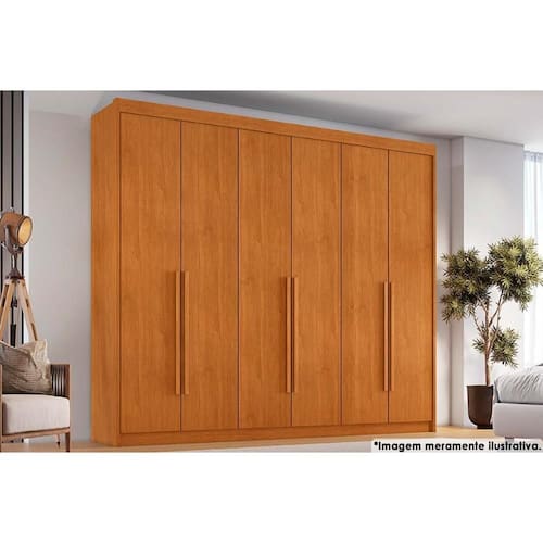 Tipo de Cabideiro - Aéreo Material dos Cabideiros - Cabideira Metálico Tipo de Porta do Guarda-Roupa - Portas de Bater Material das Portas - Portas em MDF Tipo de Dobradiças - Dobradiças Metálicas Quantidade de Portas - 6 Portas de Abrir Material das Gavetas - Gavetas em MDF Tipo de Corrediça - c/ Corrediças Telescópicas Quantidade de Gavetas - 6 Gavetas Material das Prateleiras - Prateleiras em MDF Quantidade de Prateleiras - 8 Quantidade de Nichos - 2 Nichos