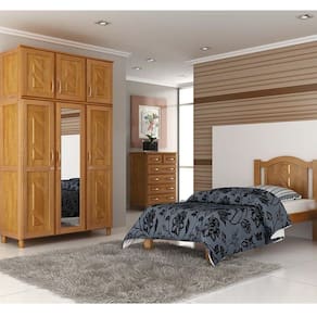 Conteúdo da Embalagem: 1 Guarda-Roupa, 1 Cômoda, 1 Cama Solteiro, Kit Ferragem e Manual de Instruções;