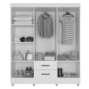Feito em MDP. Contém 6 portas, 2 cabideiros em alumínio e 2 gavetas com corrediças metálicas, facilitando a abertura e deslizamento.