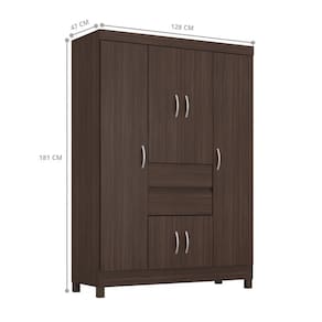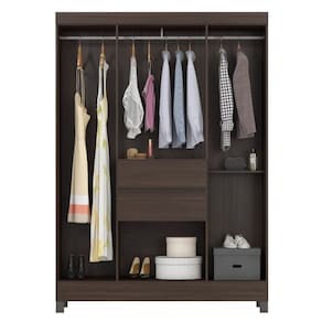 Produzido em MDP. Acompanha cabideiros em madeira, puxadores cromados e pés em PVC