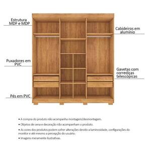 Quarto bagunçado nunca mais! O Roupeiro Casal Porto Bello Plus, tem espaço de sobra para você guardar o que precisar, e ainda complementar a decoração do ambiente com design moderno e super funcional. São 6 portas de bater, 4 gavetas com corrediças telescópicas, prateleiras, 2 cabideiros em alumínio e maleiro a disposição para você colocar objetos, artigos de beleza, roupas dobradas nas prateleiras ou esticadas nos cabides para não amassar, enfim, opções de espaço não vão faltar!Dimensão do Produto Montado:Largura: 201,3 cmAltura: 225 cmProfundidade: 47 cmPeso Aproximado: 146,65 kgCaracterísticas:Material da Estrutura: MDF e MDP 15mmAcabamento: Pintura UVPossui Portas: SimPossui Gavetas: SimQuantidade de Gavetas: 04 GavetasTipo de Corrediças: Corrediças telescópicasQuantidade de Portas: 06 PortasTipo de Portas: ConvencionalPossui Cabideiros: Sim