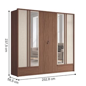 COR PREDOMINANTE: Marrom | POSSUI ESPELHOS: Sim, Possui | DESCRIÇÃO DO TAMANHO: 237,5x252,8x58,5 | ESTADO DE ORIGEM: PR | MATERIAL PRINCIPAL: MDF | QUANTIDADE DE PORTAS: 6 | PESO DO PRODUTO (KG): 206,5 | PRODUTO: Guarda roupa com espelho | MARCA: Santos Andira | COMPRIMENTO PRODUTO COM EMBALAGEM (CM): 55,7 | ALTURA DO PRODUTO COM EMBALAGEM (CM): 42 | TIPO DE GUARDA ROUPA: Casal | ALTURA DO PRODUTO (CM): 237,5 | CONTEÚDO DA EMBALAGEM: 1 Guarda Roupa e 1 Espelho | QUANTIDADE DE GAVETAS: 5 | LARGURA PRODUTO COM EMBALAGEM (CM): 250,3 | PRODUTO PRECISA DE MONTAGEM?: Sim,Sugerimos a contratação de um montador para a montagem do produto. Não nos responsabilizamos por causadas no ato da montagem. | CORES DO PRODUTO (FILTRO DE CORES): Jatobá/Areia | COMPRIMENTO DO PRODUTO (CM): 58,5 | INSTRUÇÕES/CUIDADOS: - Limpar com flanela ou pano macio seco, não utilizar produtos abrasivos, | LARGURA DO PRODUTO (CM): 252,8 | PESO PRODUTO COM EMBALAGEM (KG): 212 | MATERIAL PARA FILTRO: MDF