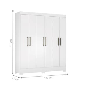 Produzido em MDP. Acompanha cabideiros em alumínio, puxadores em plástico ABS na cor bronze, pés em PVC
