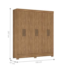 Produzido em MDP. Acompanha cabideiros em alumínio, puxadores em plástico ABS na cor bronze, pés em PVC