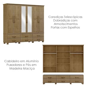 Modelo: Guarda Roupa 6P 6G Espelho Madeira Maciça 248 cm 2254 Milani Store