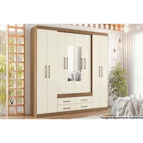 Guarda Roupa Casal 8 Portas (2 c/ Espelho) e 4 Gavetas Nápoles Jatobá/Areia - Santos Andirá