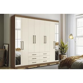 Guarda Roupa Casal 8 Portas (2 c/ Espelho) e 6 Gavetas c/ Pés Master 8.6 Jatobá/Areia - Santos Andirá