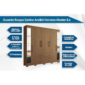 Guarda Roupa 8 Portas (2 C/ Espelho) E 6 Gavetas C/ Pés Master 8.6 Jatobá/areia - Santos Andirá