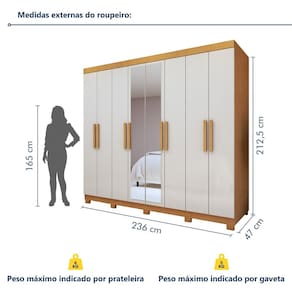 Sim, as gavetas são profundas, bem divididas e deslizam com facilidade. Acabamento da Prateleira: Pintura Escala de Brilho da Prateleira: Semi-Fosco Acabamento da Gaveta: Pintura Escala de Brilho da Gaveta: Semi-Fosco Possui Organizador de Gaveta: Não Acabamento da Porta: Pintura Escala de Brilho da Porta: Semi-Brilho Material do Puxador da Porta: MDF Acabamento dos Pés: Pintura Altura do Espelho: 90 cm Altura dos Pés: 7 cm Altura Máxima dos Pés: 7.0000 Ambiente Principal: Quarto codigo_ean: 7900288198235 Complexidade da Montagem: Alta: deve ser montado por um montador especializado Cor: Amêndoa Clean/Off White Cor da Porta: Off White Cor do Produto: Amêndoa Clean/Off White Cor do Puxador: Marrom Escala de Brilho: Semi-Fosco Espessura da Estrutura (mm): 12 mm Espessura das Portas (mm): 15 mm Espessura das Prateleiras (mm): 12 mm Espessura do Espelho: 3 mm Espessura do Fundo (mm): 2,7 mm Espessura do Fundo das Gavetas (mm): 2,7 mm Formato do Espelho: Retangular Gaveta com Chave: Não Itens Inclusos: 1 Guarda-Roupa, Kit Ferragens e Manual de Montagem Largura do Espelho: 23,5 cm Linha ou Coleção: Andara Soft Manual de Montagem e Instalação: https://product-hub-prd.madeiramadeira.com.br/525467645/documents/4ec2724a-a895-4588-909a-df758711dd5a308027173217528464159371.pdf Marca: Móveis Lopas Material da Gaveta: MDP Material da Porta: MDP Material da Prateleira: MDP Material dos Pés: Plástico Material Principal: MDP modular: Não Necessita Montagem: Sim Origem do Produto: Nacional Peso: 140,29 kg Peso Máximo por Gaveta: 5 kg Peso Máximo por Prateleira: 6 kg Porta Janelada: Não Possui Calceiros: 02 Possui Espelho: Sim Possui Pés: 10 Possui Portas: Sim Possui Prateleiras: Sim Produto Montado: Sim Quantidade de Cabideiros: 02 Cabideiros Quantidade de Espelho: 04 Espelhos com Tamanhos Iguais Quantidade de Gavetas: 04 Gavetas Quantidade de Portas com Espelhos: 2 Portas com Espelho Quantidade de Prateleiras: 08 Prateleiras Recomendações de Uso, Manutenção e Limpeza: Limpar com pano macio e levemente umedecido. Não utilizar solventes a base e de inflamáveis. Não utilizar produtos abrasivos. Sapatas Niveladoras: Não Sistema de Montagem: Parafusos Tipo de Corrediça da Gaveta: Metálica Telescópica Tipo de Dobradiça/Corrediça da Porta: Metálica Tipo de Fixação do Espelho: Parafusos Tipo de Gaveta: Interna Tipo de Guarda-Roupa: Casal Tipo de Puxador da Gaveta: Não Possui Tipo de Puxador da Porta: Externo