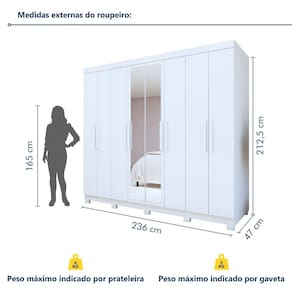 Sim, as gavetas são profundas, bem divididas e deslizam com facilidade. Acabamento da Prateleira: Pintura Escala de Brilho da Prateleira: Semi-Fosco Acabamento da Gaveta: Pintura Escala de Brilho da Gaveta: Semi-Fosco Possui Organizador de Gaveta: Não Acabamento da Porta: Pintura Escala de Brilho da Porta: Semi-Brilho Material do Puxador da Porta: MDF Acabamento dos Pés: Pintura Altura do Espelho: 90 cm Altura dos Pés: 7 cm Altura Máxima dos Pés: 7.0000 Ambiente Principal: Quarto codigo_ean: 7900288198242 Complexidade da Montagem: Alta: deve ser montado por um montador especializado Cor: Branco Cor da Porta: Branco Cor do Produto: Branco Cor do Puxador: Branco Escala de Brilho: Semi-Brilho Espessura da Estrutura (mm): 12 mm Espessura das Portas (mm): 15 mm Espessura das Prateleiras (mm): 12 mm Espessura do Espelho: 3 mm Espessura do Fundo (mm): 2,7 mm Espessura do Fundo das Gavetas (mm): 2,7 mm Formato do Espelho: Retangular Gaveta com Chave: Não Itens Inclusos: 1 Guarda-Roupa, Kit Ferragens e Manual de Montagem Largura do Espelho: 23,5 cm Linha ou Coleção: Andara Soft Manual de Montagem e Instalação: https://product-hub-prd.madeiramadeira.com.br/627858173/documents/1575d8fb-1435-4062-9baa-18ec695cc402308027873217528464518192.pdf Marca: Móveis Lopas Material da Gaveta: MDP Material da Porta: MDP Material da Prateleira: MDP Material dos Pés: Plástico Material Principal: MDP modular: Não Necessita Montagem: Sim Origem do Produto: Nacional Peso: 140,29 kg Peso Máximo por Gaveta: 5 kg Peso Máximo por Prateleira: 6 kg Porta Janelada: Não Possui Calceiros: 02 Possui Espelho: Sim Possui Pés: 10 Possui Portas: Sim Possui Prateleiras: Sim Produto Montado: Sim Quantidade de Cabideiros: 02 Cabideiros Quantidade de Espelho: 04 Espelhos com Tamanhos Iguais Quantidade de Gavetas: 04 Gavetas Quantidade de Portas com Espelhos: 2 Portas com Espelho Quantidade de Prateleiras: 08 Prateleiras Recomendações de Uso, Manutenção e Limpeza: Limpar com pano macio e levemente umedecido. Não utilizar solventes a base e de inflamáveis. Não utilizar produtos abrasivos. Sapatas Niveladoras: Não Sistema de Montagem: Parafusos Tipo de Corrediça da Gaveta: Metálica Telescópica Tipo de Dobradiça/Corrediça da Porta: Metálica Tipo de Fixação do Espelho: Parafusos Tipo de Gaveta: Interna Tipo de Guarda-Roupa: Casal Tipo de Puxador da Gaveta: Não Possui Tipo de Puxador da Porta: Externo