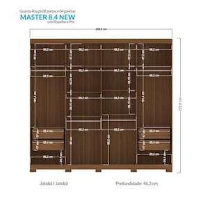 O guarda-roupa Master Vip New 8.4 da Santos Andirá é um guarda roupa de casal de amplo espaço.