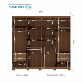 O guarda-roupa Master Vip New 8.4 da Santos Andirá é um guarda roupa de casal de amplo espaço.