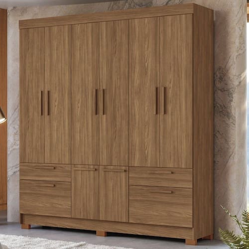 O guarda-roupa Curitiba 8.4 da Santos Andirá é um guarda roupa de casal de amplo espaço. Possui divisão interna ideal para compor um quarto de casal, com muitas prateleiras, gavetas e